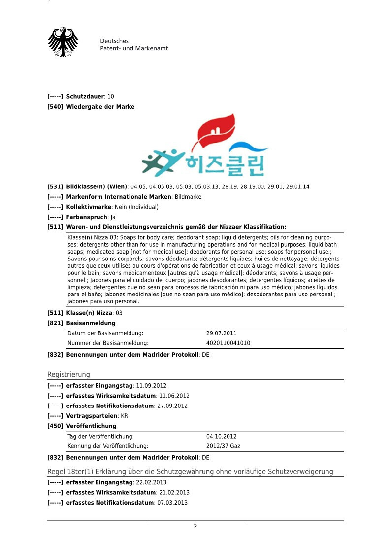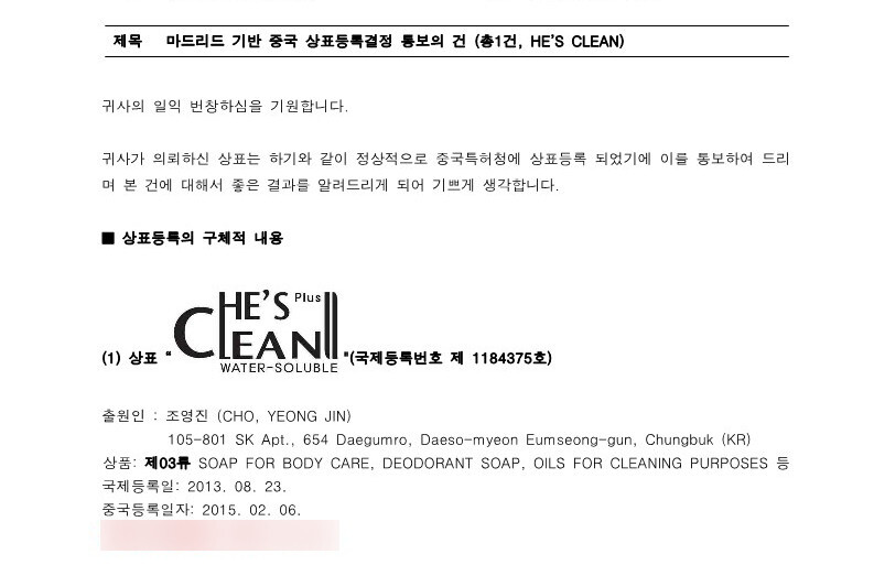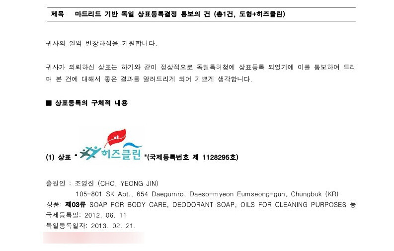 ★WIPO(유엔 산하 기관) 독일, 중국 히즈클린 지적재산권★